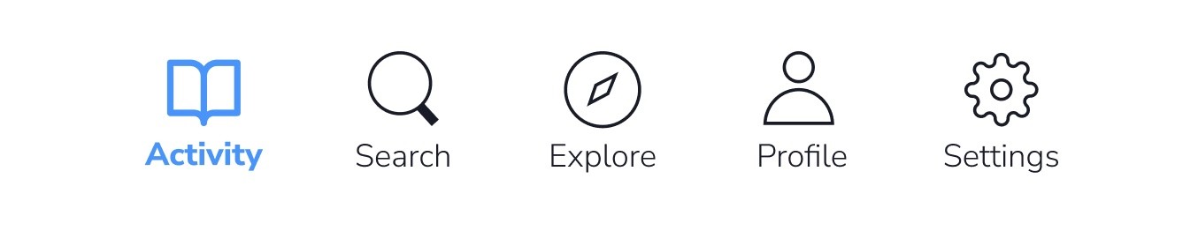 The navigation bar : I redesigned the pictos and make them clearer. I found the “more” option in the current version was not corresponding to the content behind (dedicated to profile settings, recommendations, etc) so I replaced it with a settings icon. I also added a micro-interactions on the icons (see “Activity” and “Search” in the demo video) to make them more visible.